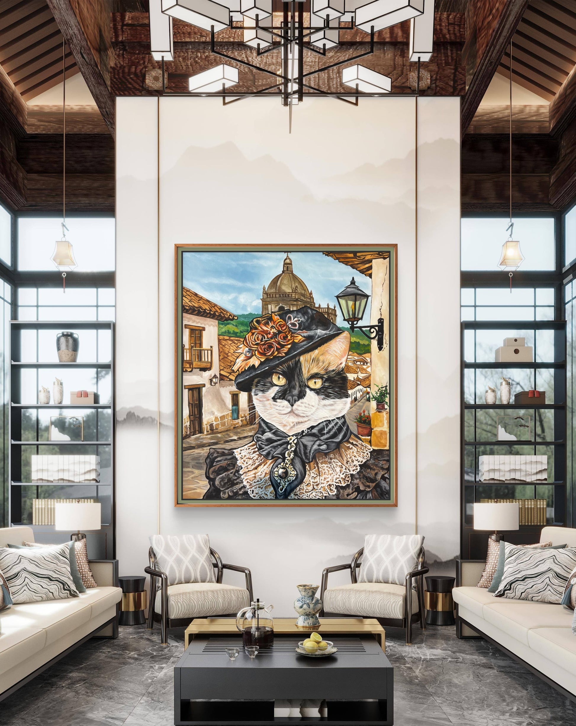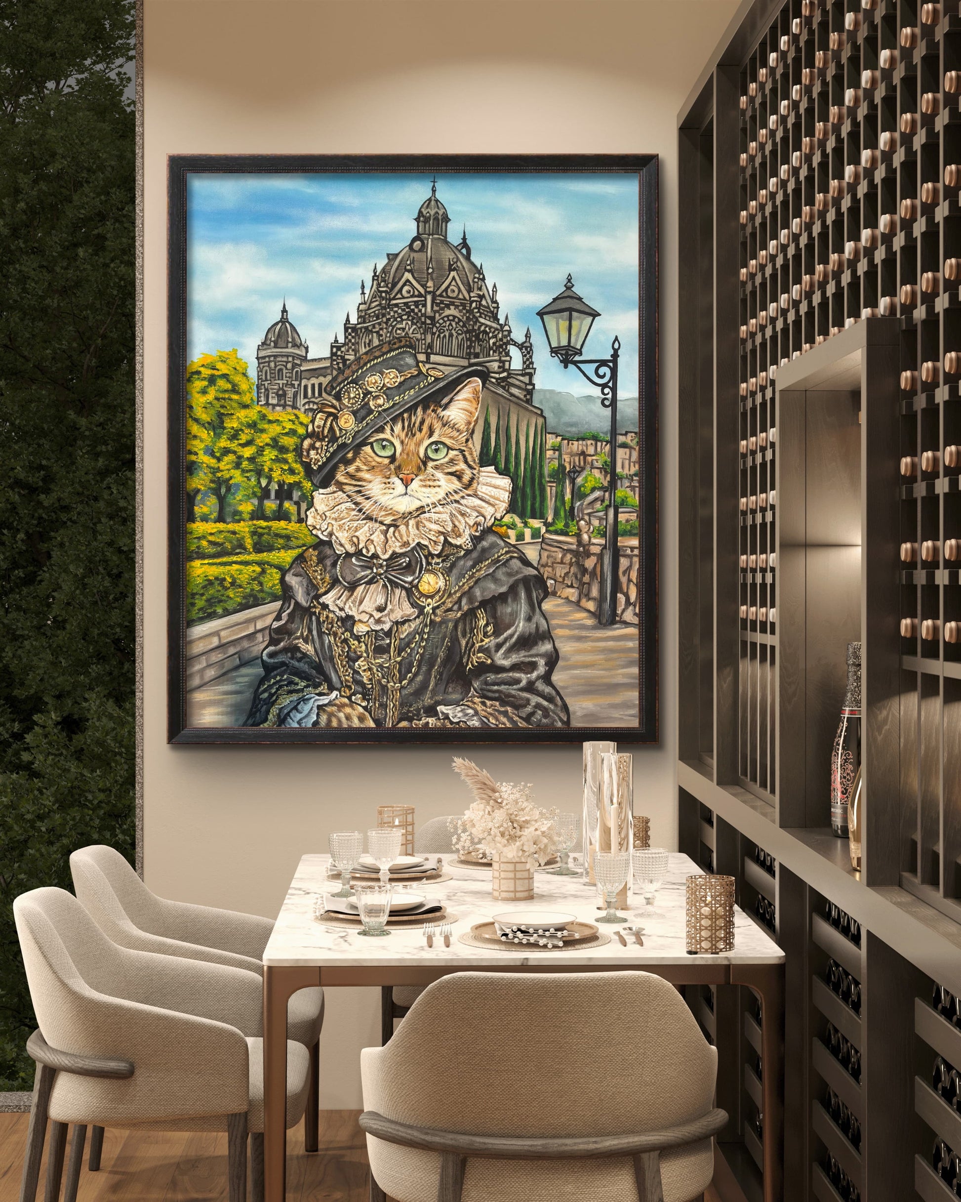 ¿Tu gato se siente el dueño de la casa? Dale el título que se merece. Transformamos la foto de tu mascota en este sofisticado retrato de época con estilo de galería europea.
